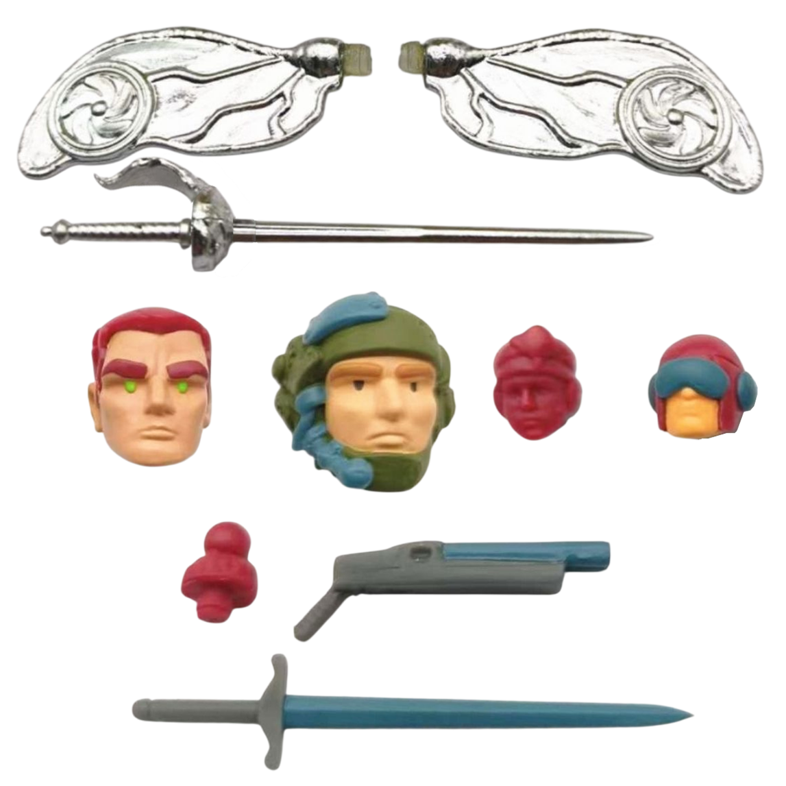 Includes all that you see, including two larger scale bonus heads that work with "legends" style figures.