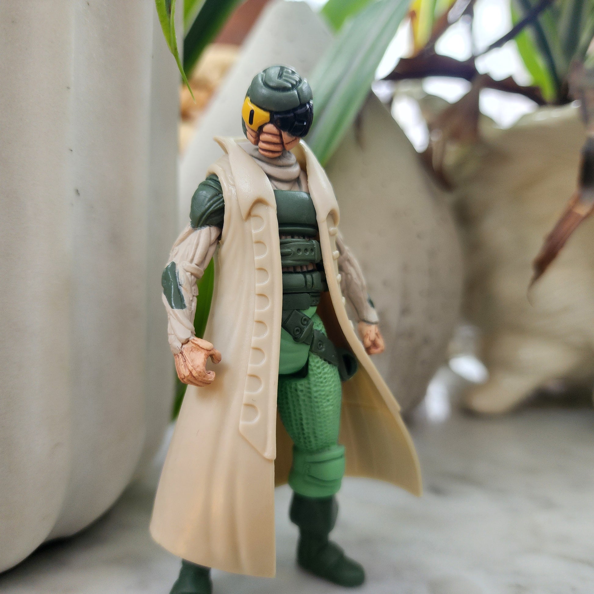 Figure includes belt, jacket, collar piece, sticker sheet, and trading card.