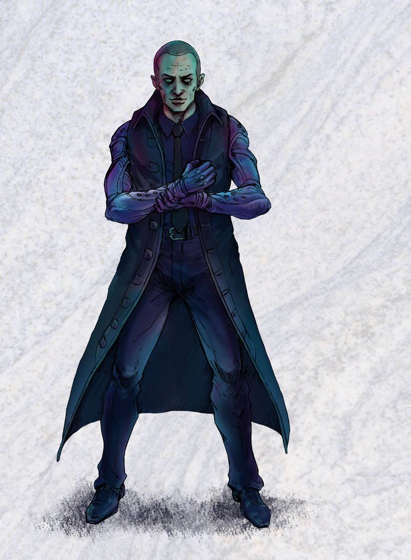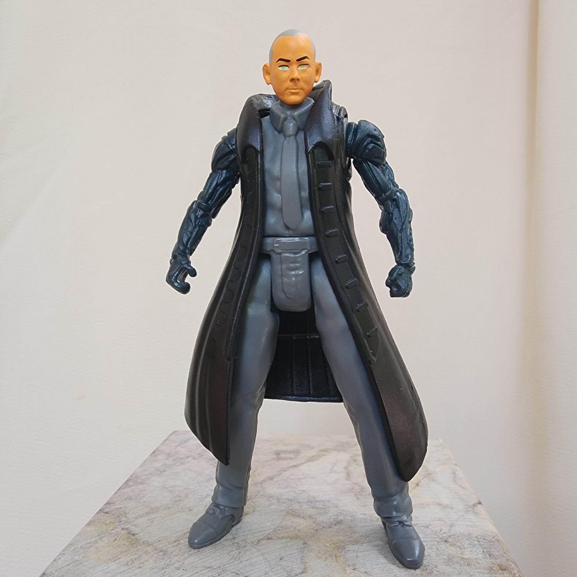 Includes full suitman figure plus two guns, long black coat, alternate head.