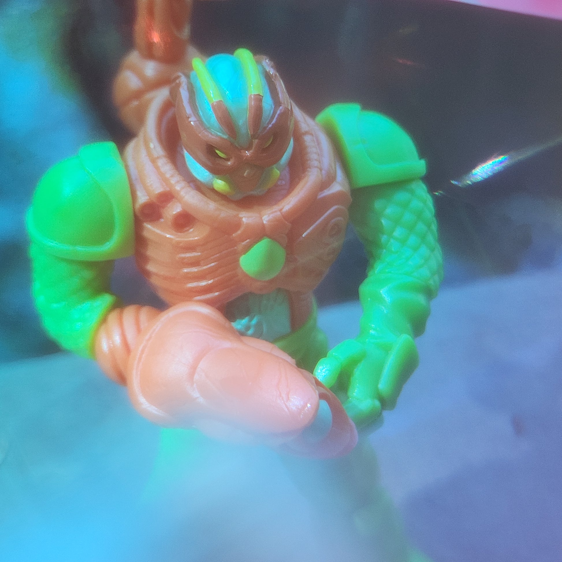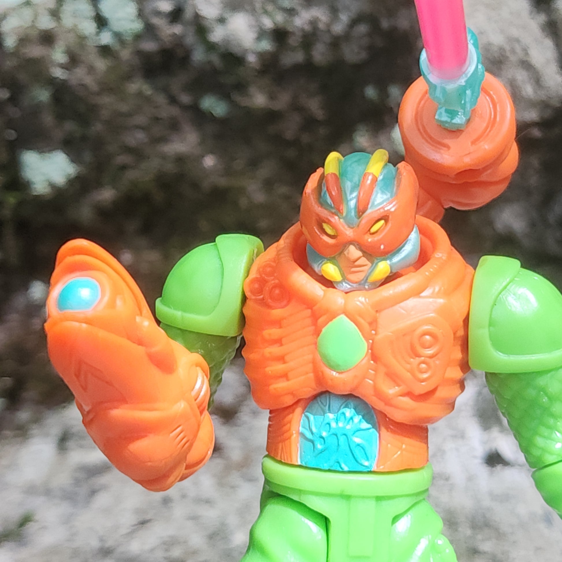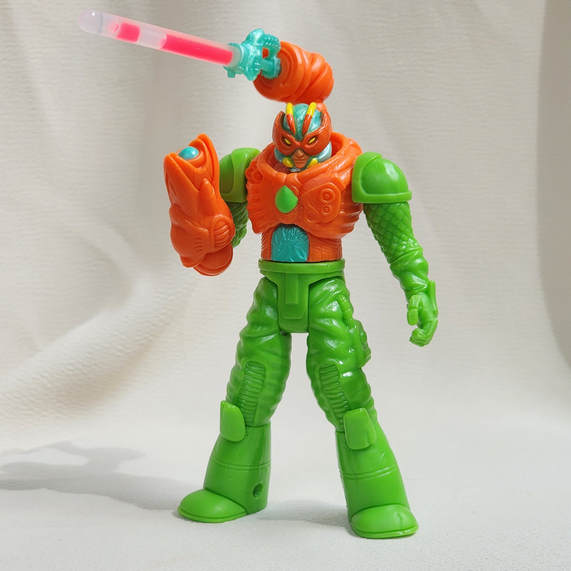 Includes Gauss parts (no limbs), Orange Onell Axis Joints, full green Diver base body, Bugman head, caster wand, and random color glowstick.
