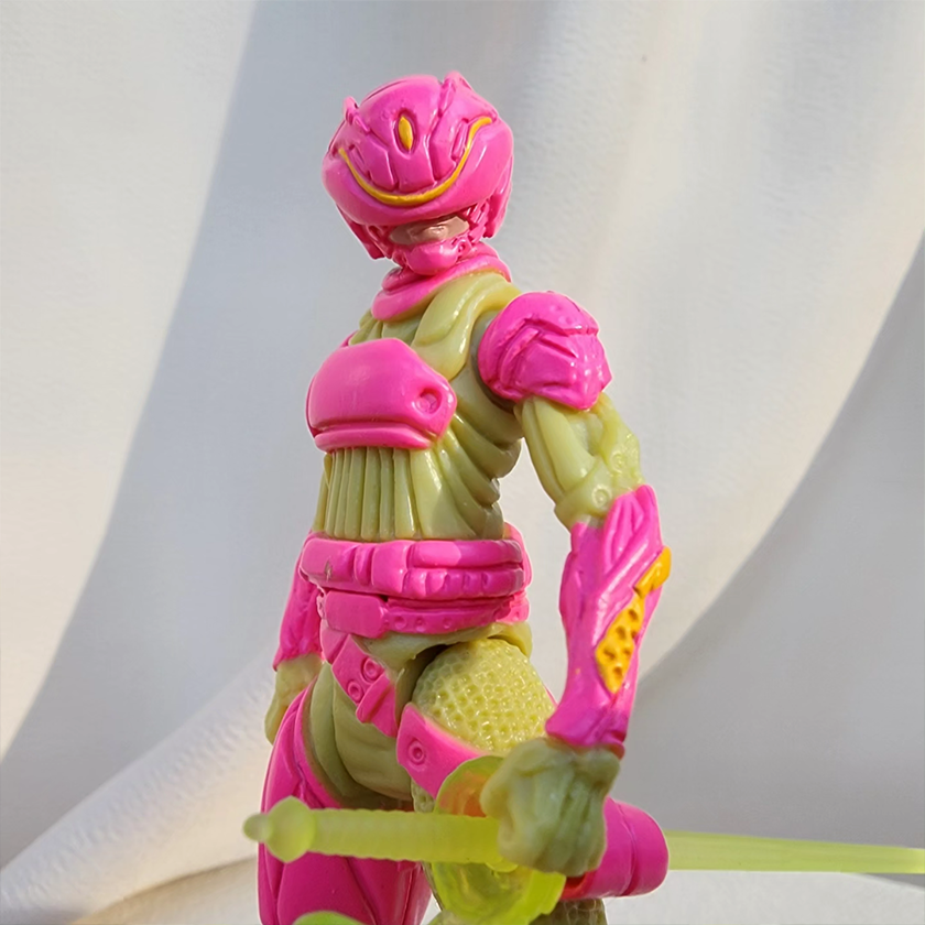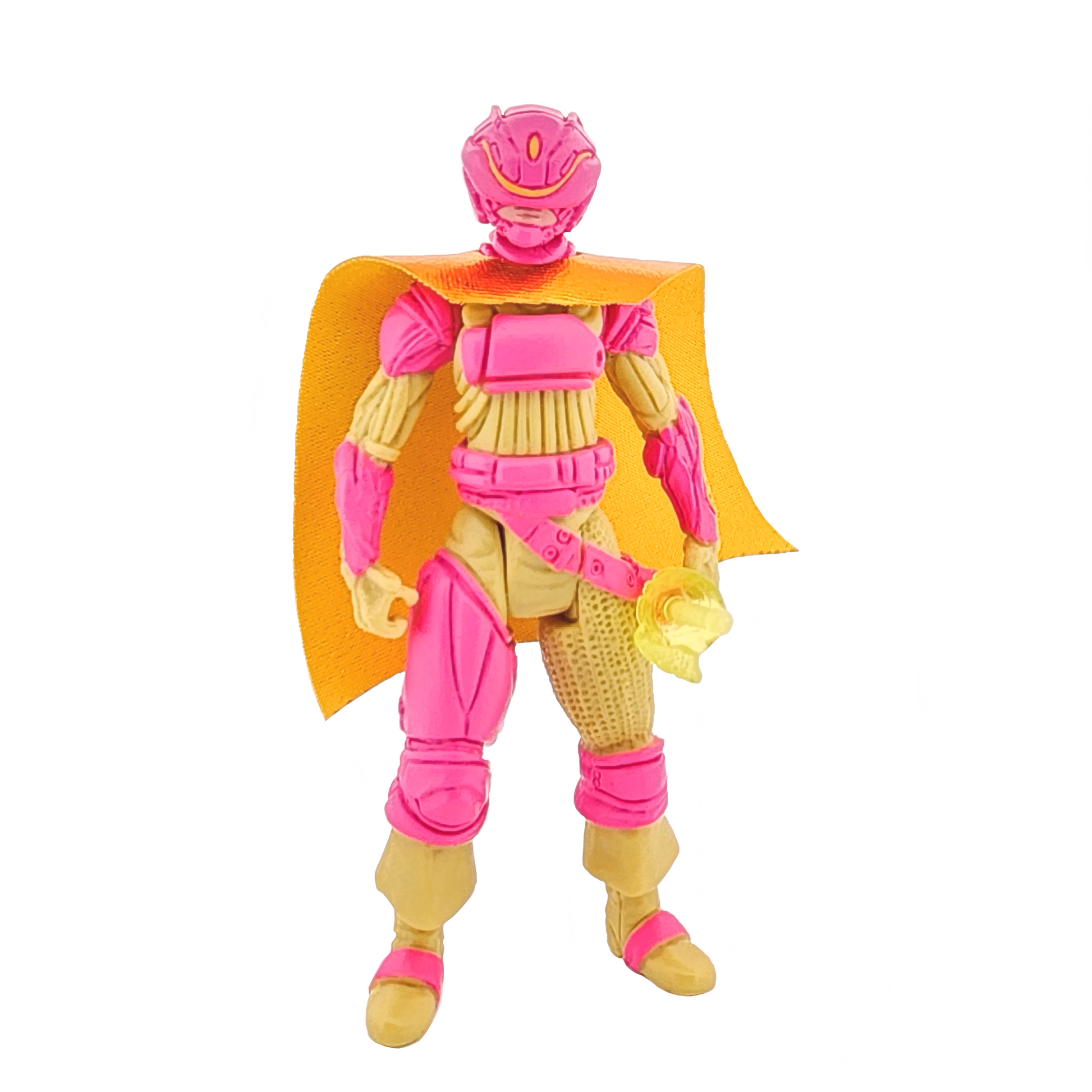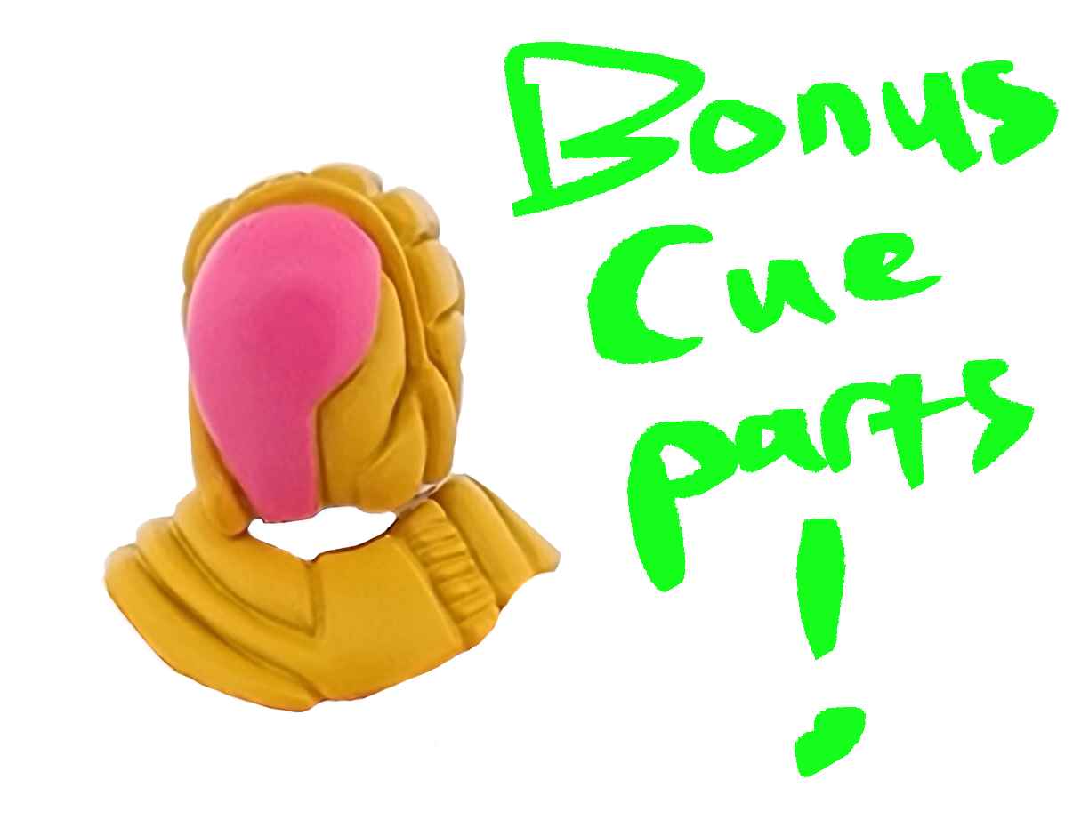 Figure includes sword + cape (note color / styles may vary) as well as bonus Cue Pieces